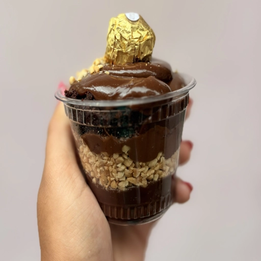 Brigadeiro de chocolate + amendoim picado+ Nutella+ brownie+ bombo ferrero.